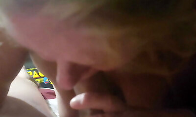 Chef sucking my immense pipe until i cum on her cheeks