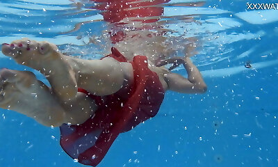 Hottest milf peels off underwater