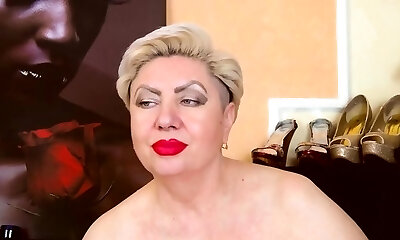 Super-hot housewife Lukerya has fun flirting with fans online, flashing off the beauty of her middle-aged but handsome body in red.