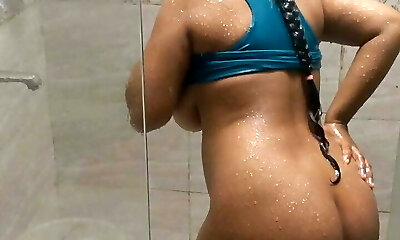 Massive Boobs Wet Indian Girl Riding in Bathroom