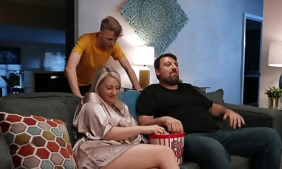 Slutty step-mother Ryan Keely fucks her stepdaughter's spouse during sleepover and asks for threesome