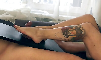 MILF with sexy legs gives FOOTJOB