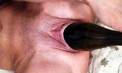 Xxl PNG MILF inserts bottle into Pussy
